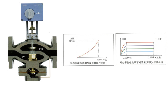 (2)當(dāng)電動(dòng)執(zhí)行器接受控制信號(hào)使閥桿向上或向下運(yùn)動(dòng),使閥塞開大或關(guān)小,P2、P3間的開度也隨之變化。由于不管系統(tǒng)壓差如何變化,P2、P3間的壓差(P2--P3)始終不變,因此對(duì)應(yīng)于任一開度位置,其輸送的水流量都是一定的。